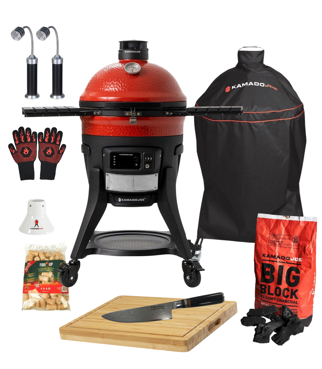 De Kamado Joe Konnected Joe is een slimme keramische kamado met automatische ontsteking, digitale temperatuurregeling en app-bediening. Combineert traditionele houtskoolsmaak met moderne technologie en ultiem gebruiksgemak.