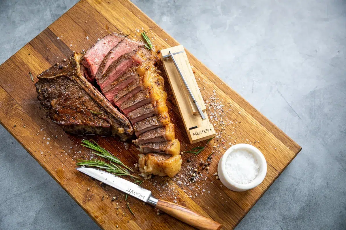 Via de gratis Meater-app (beschikbaar voor iOS en Android) volg je in realtime het hele kookproces. Je ontvangt meldingen wanneer het tijd is om je gerecht van het vuur te halen, en de app berekent zelfs automatisch de resterende bereidingstijd op basis van temperatuurverloop. De app bevat ook vooraf ingestelde profielen voor verschillende soorten vlees en garingniveaus, zodat je altijd een betrouwbaar resultaat behaalt – zelfs zonder ervaring.