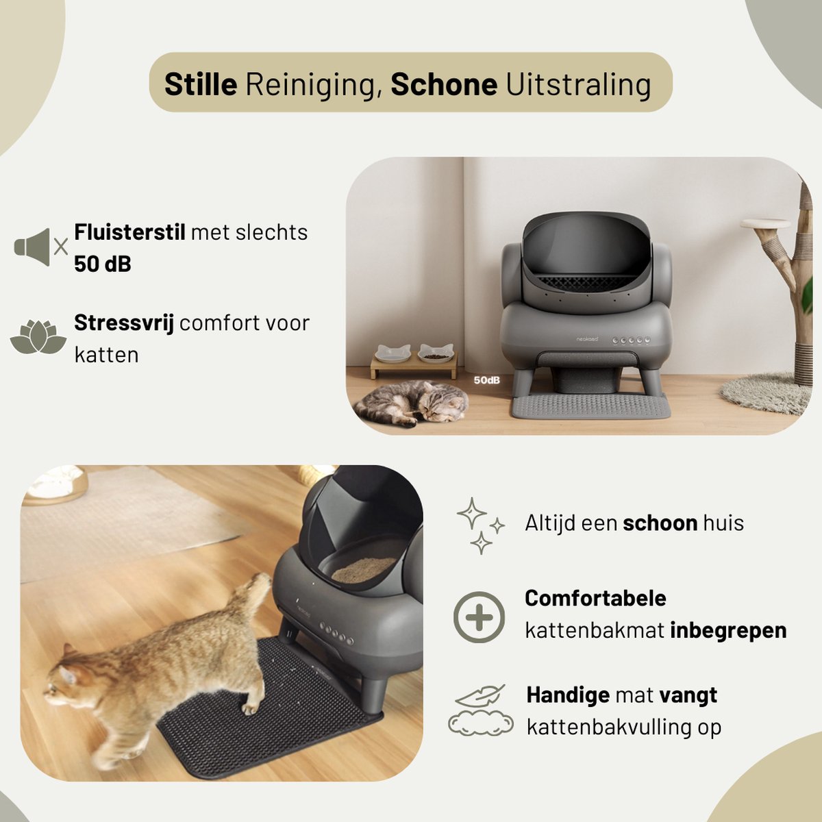 De Neakasa M1 is een luxe, zelfreinigende kattenbak met slimme app-bediening. Geschikt voor katten van 1–10 kg, tot 14 dagen zonder schoonmaken. Inclusief mat en afvalzakken voor een hygiënische, zorgeloze kattenervaring.