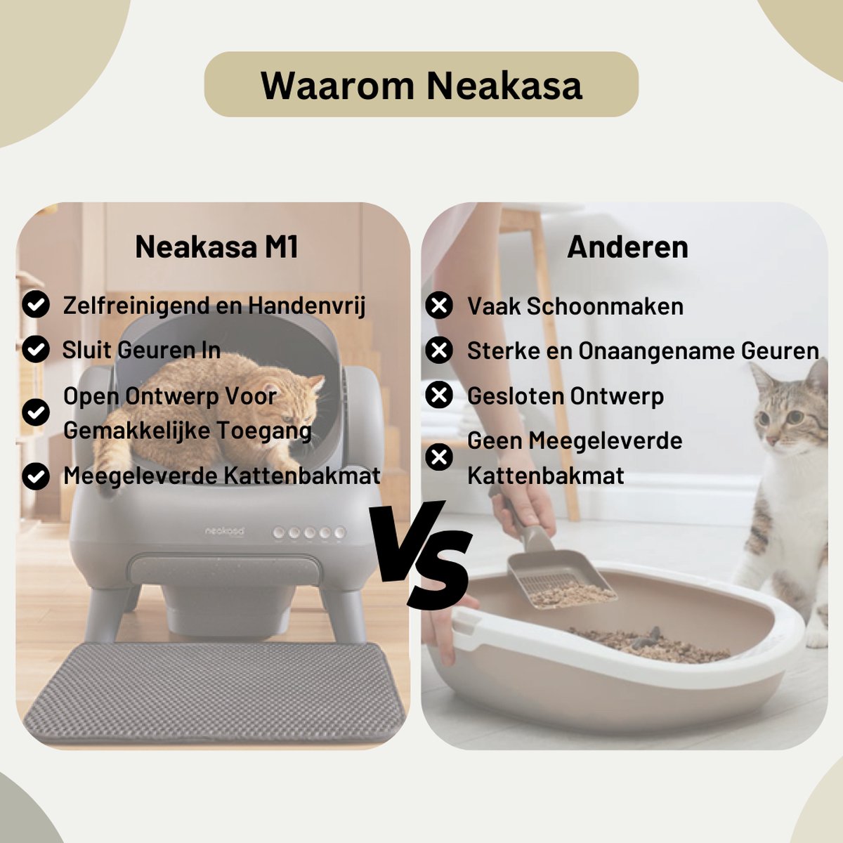De Neakasa M1 is een innovatieve, zelfreinigende automatische kattenbak die luxe en technologie samenbrengt in één stijlvol en slim ontwerp. Met een geavanceerd sensorsysteem, app-integratie en ruime capaciteit, biedt deze kattenbak een hygiënische, comfortabele en volledig geautomatiseerde oplossing voor katten én hun baasjes. Geen gedoe meer met handmatig schoonmaken, nare geurtjes of uitloop van grit – de M1 doet het werk voor je.